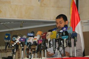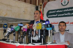 اتحاد الإعلاميين اليمنيين ينظم مؤتمرا صحفيا خاصا بإطلاق تقريره الثالث لجرائم العدوان On أبريل 30, 2018 Share Share FacebookTwitterGoogle+ReddItWhatsAppTelegramPinterestالبريد الإلكترونيTumblr