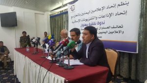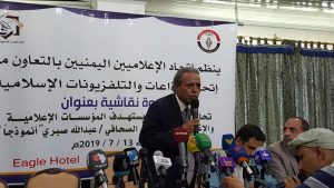 وقال زكريا الشرعبي الذي تحدث باسم مكتب اتحاد الاذاعات والتلفزيونات الإسلامية في صنعاء، أن إقامة هذه الندوة يأتي في إطار الفعاليات التضامنية مع رئيس اتحاد الاعلاميين الصحافي عبدالله صبري، ومع الاعلاميين اليمنيين، داعيا المجتمع الدولي القيام بمسؤولياته لإيقاف العدوان والضغط على تحالف العدوان بهدف تمكين الصحفيين الدوليين ووسائل الإعلام الخارجية من زيارة اليمن للإطلاع على ما جرى ويجري فيها من انتهاكات بحق المدنيين والأعيان المدنية.
