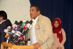 وأهاب بكل الإعلاميين أن يبتعدوا عن المناكفات الإعلامية والمزايدات السياسية.. مضيفا” إن صمودنا وقوتنا هو في توحدنا”.