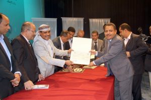 وفي ختام الحفل الذي جرى خلاله التوقيع على ميثاق الشرف الإعلامي قام عضوا المجلس السياسي الأعلى سلطان السامعي ومحمد النعيمي ووزراء الإعلام والمالية والخدمة المدنية بتكريم المؤسسات الإعلامية والقنوات والإعلاميين المبرزين الذين كان لهم دورا بارزا في كشف جرائم العدوان.